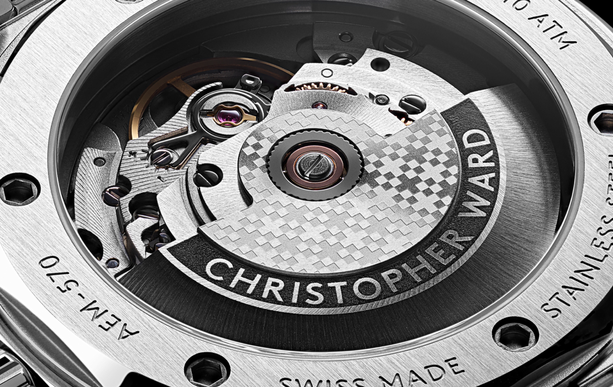 Indeed, as you turn The Twelve in your hands, you’ll find intriguing details everywhere. In a playful tip of the hat to the Royal Oak, six exposed screws hold down the 12-sided case-back surround, while Christopher Ward’s sword and triangle handset is rendered in a slim, sophisticated fashion.
