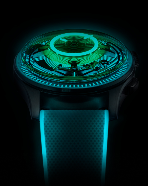 When the lights go down, the new C1 Bel Canto Lumière comes alive. A fusion of art, acoustics and luminescence, this remix of our GPHG award-winning chiming watch delivers a sci-fi experience that’s out of this world. And which places Globolight® – the luminous ceramic made famous by the C60 Trident Lumière – at the centre of everything.