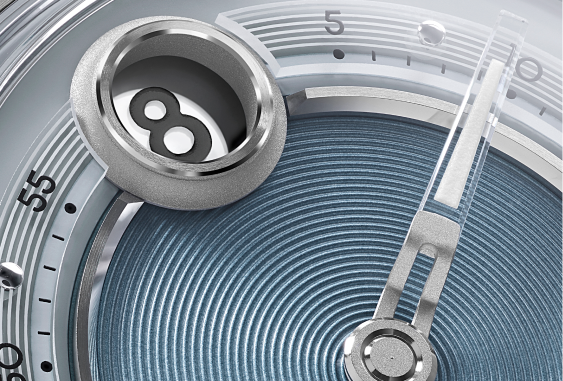 The hour aperture is a two-part construction with an inner ring featuring circular brushing and polished facets. Featuring a Super-LumiNova® inner ring and a Globolight® ceramic block behind the hour aperture with retro-futuristic numerals exclusive to the C1 Jump Hour Mk V. The sapphire dial ring's translucency allows the entire hour disc to charge, ensuring low-light hour jumps remain legible.