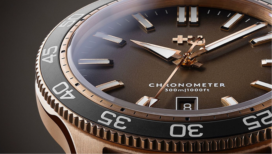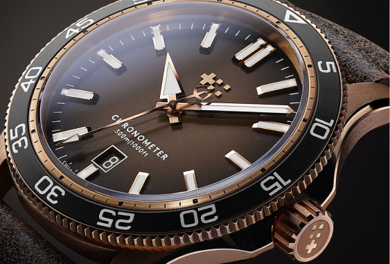 And if you’re passionate about seeing advanced watchmaking up close, the exhibition caseback delivers a view of the COSC-certified Sellita SW200 automatic movement. Should you wish to take the Pro 300 Bronze for a deep dive, the countdown bezel, with a rotation of 120 clicks, will provide you with the precision and reliability you need.