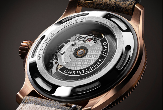 If you like to see elite Swiss watchmaking up close, the chronometer-certified Sellita SW200 automatic movement, accurate to -4/+6 seconds per day, can be enjoyed through the clear caseback.