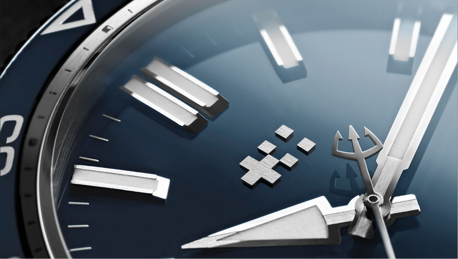 The dial’s larger indexes deliver increased luminosity while the new twin-flags logo at 12 o’clock balances the date wheel at 6. The handset has been upgraded, too: a precision-engineered arrow-head seconds hand, influenced by the ambitious C60 Concept, replaces the standard Trident design.