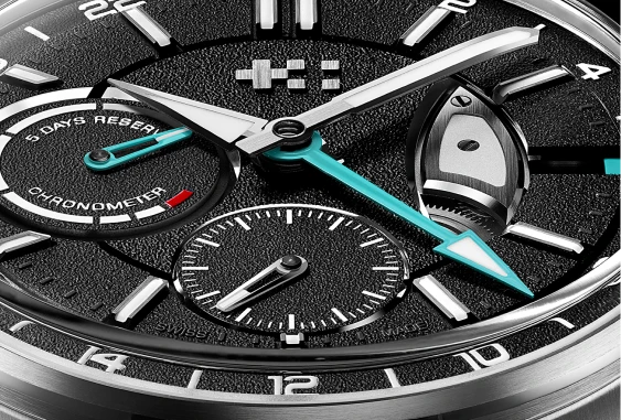 Diamond-polished hour, minute, and small seconds hands, all filled with Super-LumiNova® for low-light legibility; GMT hand and power-reserve indicator lacquered for contrast.