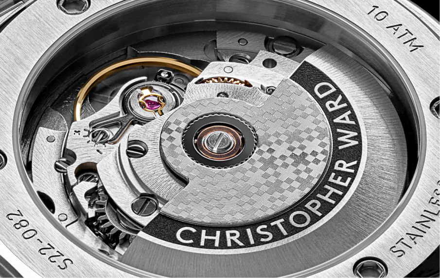 The 26-jewel movement boasts a date wheel, a 4Hz frequency (equating to a smooth eight ticks per second) and a 38-hour power reserve. It also has an in-built anti-shock system to maintain accuracy when faced with any sudden jolts.