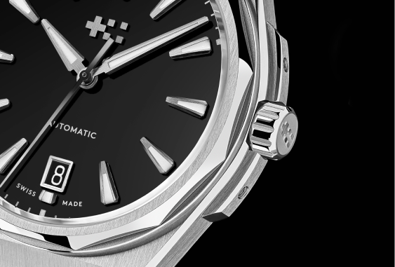 A new, polished, lacquered dial in Midnight Black, with elevated date window